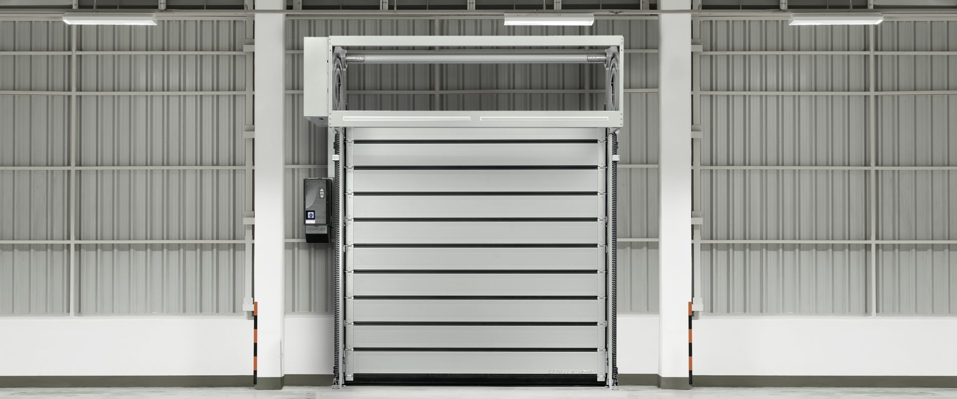 Los espacios angostos requieren una solución a la medida que se adapte a las condiciones dadas. Con la puerta de accionamiento rápido en espiral EFA-SST® Efficient, EFAFLEX ofrece una puerta compacta y sin muelles que puede colocarse de forma óptima incluso en situaciones de instalación estrechas.